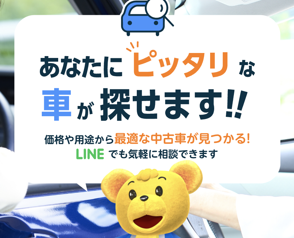 子グマのマーくんが目印!当サイトでは岐阜県下の中古車を用途から検索ができます。